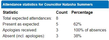 For Natasha’s attendance record see Attendance record – Councillor Natasha Summers | The London Borough Of Havering